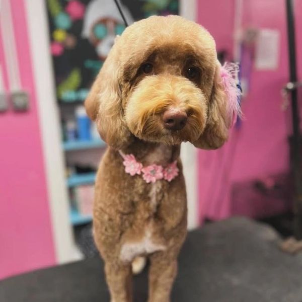 Bath, Ear Cleaning and Plucking, Nails Trimmed and Buffed, Anal Glands, Full Haircut, Bow/Bandana/Tie